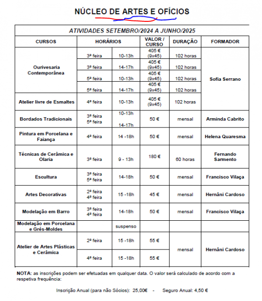 Aprendizagem das diversas técnicas de trabalhar o barro. Inicialmente,são trabalhadas figuras consideradas obrigatórias: mãos, dorsos, rostos, etc., de modo a criar figuras livres. Recuperação de peças quebradas com betumes e patines. Estudo da aplicação de outros materiais na junção com o barro. Trabalhos com modelos ao vivo.